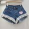 Women's Clothing Slim Stitching Lace Wide Leg A Line Raw Edge Denim Shorts Women's Hot Pants Trend