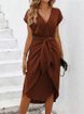 Women's Clothing solid color slit wrap-around short skirt short sleeve loose knot dress