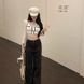Women's Clothing Spring New Diamond Design High Waist Jeans Women's Loose Slimming Straight Wide Leg Trousers