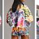 Women's Clothing Street Style Personality Colorful Letter Graffiti Denim Jacket Women's Autumn Loose Short Style Raw Edge Tattered Top