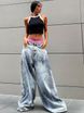 Women's clothing street washed distressed all-match cigarette bell-bottom pants Low-waist wide-leg drape loose slim jeans