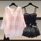 Women's Clothing Summer Outfit Complete Set New Style Sun Protection Shirt Large Size Slim Suspenders Denim Shorts Three Piece Set