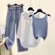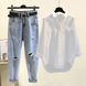 Women's Clothing Summer Suit For Women New Large Size Wear Sun Protection Shirt Inner Suspenders With Ripped Jeans Three Pieces