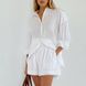 Women's Clothing temperament shirt jacquard striped puff sleeve shorts commuting design casual suit