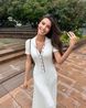 Women's Clothing Temperament Splicing Contrast Color Hip-wrapped Short Sleeve Long Single-breasted Knitted Dress