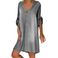 Women's Clothing V Neck Buttoned Pullover Mid Sleeve Denim Dress