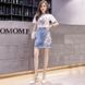 Women's clothing white t-shirt for women + heavy industry embroidered denim skirt suit wholesale hip skirt two-piece set