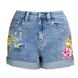 Women's Clothing Wide Leg Elastic Shorts Plus Size Women's Clothing 3d Heavy Embroidery Flower Denim Shorts For Women