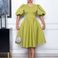 Women's Clothing Women's Round Neck Temperament Bubble Sleeve Wrapped Waist Large Swing Dress A-line Dress