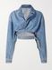 Women's Cropped Denim Jacket With Cross-Over Design, Lace-Up Waist Detail & Distressed Accents - Oversized Fit Streetwear Style