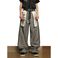 Channeling 90s riot grrrl energy with intentional distressing, these asymmetrical wide-leg pants blend utilitarian function with avant-garde detailing. The raw-edge hem and removable ties invite personalized styling.