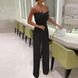 Women's feather patchwork sexy strapless fashion dress wide leg jumpsuit
