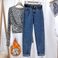 Women's High Waist Flared Jeans With Fleece Lining, Loose Fit Straight Leg, Slimming & Warm, Petite & Plus Size, Nine-Length, Retro Dad Pants