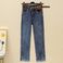 Women's High Waist Straight Leg Jeans With Slit Detail, Stretch Tapered Cropped Pants For Casual & Office Wear – Classic Blue Denim