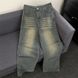 Vintage Acid Wash: Faded whiskering at hips mimics authentic wear