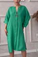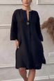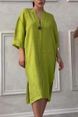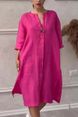 Women's New Cotton and Linen Pure Color Casual Round Neck Button Long Dress