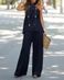 Women's new fashion casual backless solid color sleeveless suit wide-leg pants two-piece suit