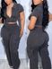 Women's new spring and summer new fashion zipper tops multi-pocket trousers casual solid color suits