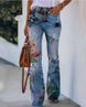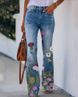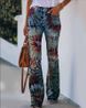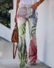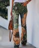 Women's plus size women's casual pants wide-leg pants art flower pattern pants