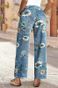 Women's Printed Straight Leg Jeans - Flowy Bootcut Denim Pants For Spring/Autumn (S-2XL, Light Blue/Dark Blue, Cotton Blend, Mid-Rise)