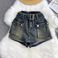 Women's Retro High Waist Denim Shorts - Distressed Wide Leg Workwear Style, Vintage American Fit