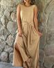 Women's Round Neck Sleeveless Dress Slit Solid Color Casual Commuting Long Skirt
