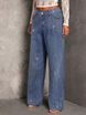 Women's Stretch Denim Jeans With Rhinestone Embellishments - Straight Leg, Comfort Fit, Blue Wide Leg Trousers For Casual & Office Wear