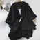 Women's suits fashion spring and summer loose suit collar three-quarter sleeves jacket nine-point wide-leg pants suspenders three-piece suit