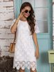Women'sNew Solid Color Short Sleeve Dress Women's Round Neck Hollow Lace Dress A-Line Dress