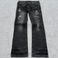 Y2K Gothic Grunge Vintage Washed Denim Jeans With Lace-Up Detail & Flared Hem For Streetwear Fashion