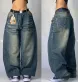 Y2K Jeans Gothic Embroidered Casual Laundry Jeans Mens Retro Street Clothing Hip Hop Loose Fashion High Waist Straight