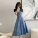 Yujie Fan's contrasting color big lapel waist A-line dress 2025 slimming early autumn dress with slit denim long skirt for women