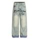 American Style Plaid Patchwork Rolled Hem Straight Jeans Men's Personalized Letter Embroidery Washed Loose Wide-Leg Pants Trendy