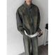 American washed yellow mud dyed blue stand up collar denim jacket for men, stylish and loose zipper jacket, trendy top