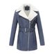 autumn and winter new long sleeved plus velvet leather jacket women's lapel double head zipper belt belt warm jacket
