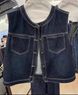 Chicco Ouhuo Korean Version New Round Neck Topstitch Design Sense Niche Waistoutwear Denim Vest