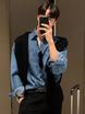 Denim shirt jacket for men in spring and autumn, cool and stylish Korean style trendy casual shirt, high-end long sleeved top
