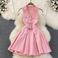 Denim Skirt Design Halter Neck Waist Short Small A Line Puffy Pleated Dress