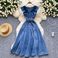 Design Sense V Neck Wood Ear Edge Stitching Single Breasted Waist Slimming Temperament Knee Length Denim Dress