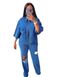 European And American Hot Sale New Fashion Personality Shirt Top Hole Denim Trousers Two Piece Set