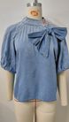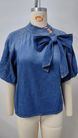 K New Retro Loose Neck Lace-up Denim Shirt; Bow-tie Top For Women