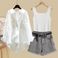 Large Size Women's Summer Suits For Women 2025 New Style Shirts For Women With Suspenders And Denim Shorts Three Piece Suits