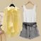 ![]() | M Recommended 80/100/Yellow shirt + white vest + gray shorts three/piece suit | 25,90€ | |