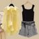 ![]() | 4XL Recommended 180/200/Yellow shirt + black vest + gray shorts three/piece suit | 25,90€ | |