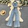 Lightly Mature Retro Fashion V Neck Sleeveless Jumpsuit For Women 2025 Summer High Grade Strappy Waisted Denim Wide Leg Pants