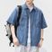 Men's Clothing Retro Solid Color Lapel Buttoned Short Sleeved Denim Shirt Neutral Washed Distressed Five Point Sleeve Loose Shirt