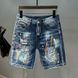 Men's Clothing Summer Personality Denim Shorts Men's Trendy Brand Five Point Pants Fashion Mid Length Pants Casual Five Point Breeches Elastic Inkjet