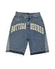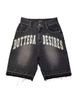 Men's Distressed Denim Shorts - Vintage Letter Print & Raw Hem | Streetwear Essential