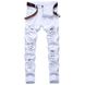Men's White Jeans Fashion Hip Hop Ripped Thin Men's Denim Pants Slim Fit Stretch Distressed Zip Men's Jean Pants High Quality