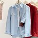Oversized Denim Shirt Women Casual Long Sleeve Polo Collar Blouse, Flyaway Sleeves, Breathable Cotton Top For Work & Weekend (Blue/White/Red)